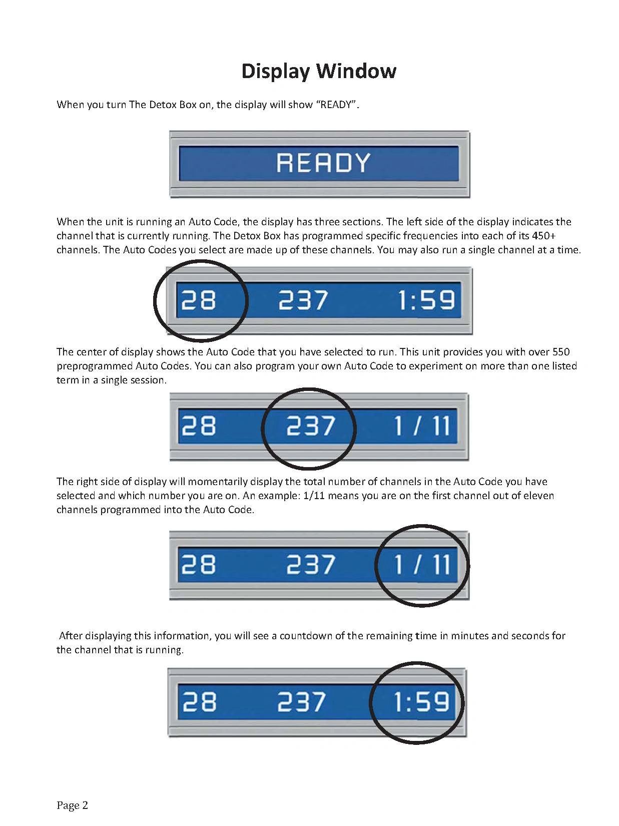 DETOX BOX: Display Window & Keypad Functions